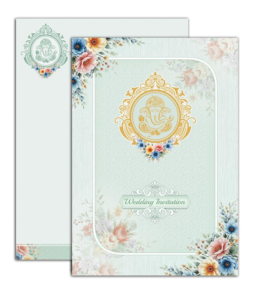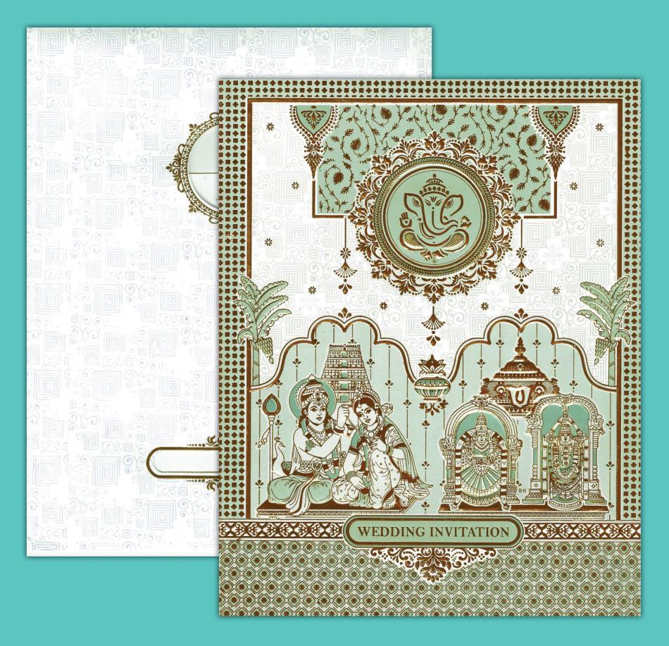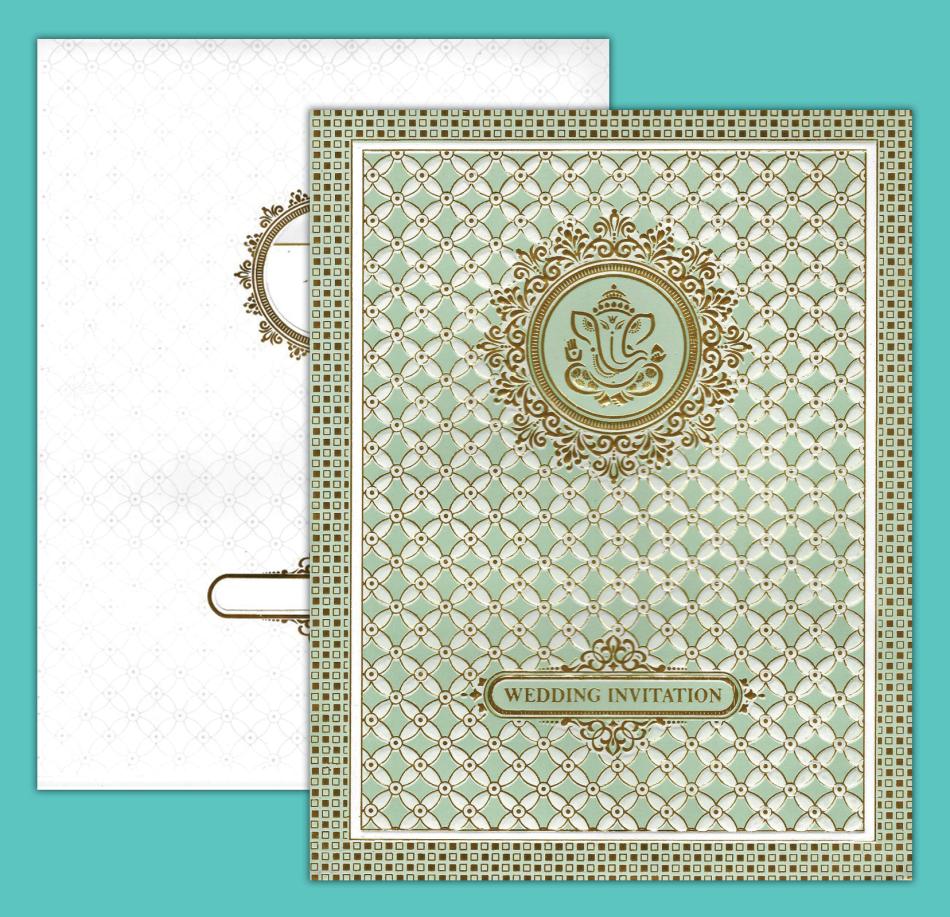 New Hampi-8787 - Vinayagar Wedding Invitation Green Set